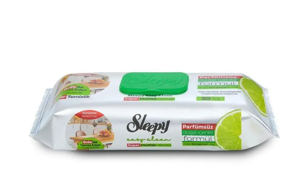 Sleepy Easy Clean Super Mutfak 50szt to praktyczne chusteczki czyszczące stworzone specjalnie z myślą o kuchni. Dzięki formule wzbogaconej o olejek bergamotki doskonale radzą sobie z tłuszczem, kurzem i codziennymi zabrudzeniami, pozostawiając świeży cytrusowy zapach w całym pomieszczeniu.