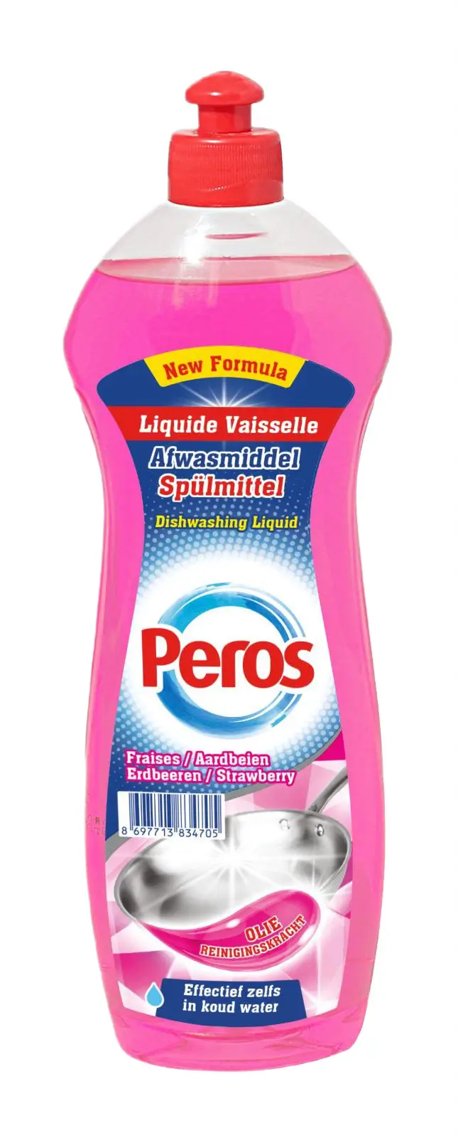 Słodko-świeży Peros Strawberry szybko rozpuszcza tłuszcz i zostawia naczynia lśniąco czyste – nawet przy myciu w zimnej wodzie. Gęsta formuła, obfita piana, łatwe spłukiwanie i przyjemny truskawkowy zapach.