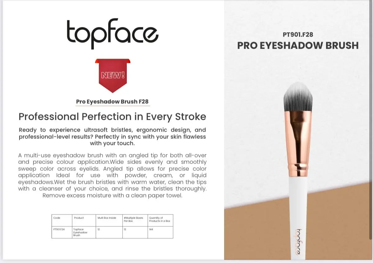 pędzel do cieni, pędzelek do cieni ścięty, angled eyeshadow brush, Topface F28, pro eyeshadow brush, pędzel do rozcierania cieni, pędzel do smoky eyes, pędzel do dolnej powieki, pędzel do kącika, pędzel do linii rzęs, makijaż oka akcesoria, miękkie włosie pędzla, ergonomiczny pędzel do cieni, profesjonalny pędzel do makijażu
