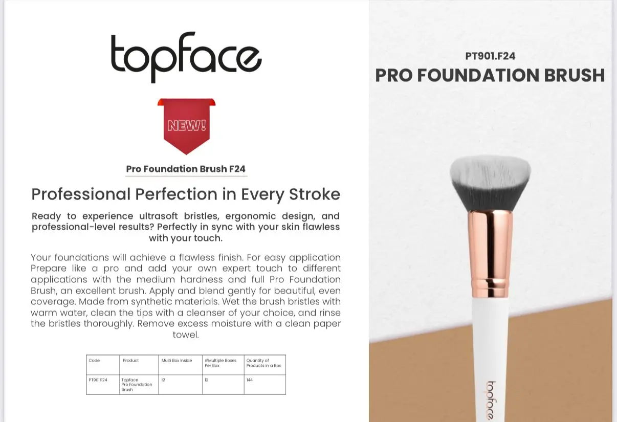 pędzel do podkładu, foundation brush, Topface F24, pędzel do BB/CC, buffing brush, stippling brush, pędzel do kremowego podkładu, gęste syntetyczne włosie, równomierne krycie bez smug, akcesoria do makijażu twarzy